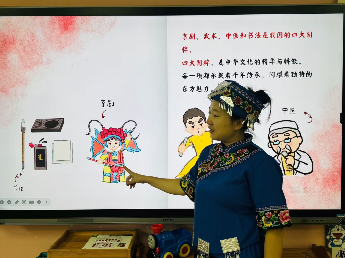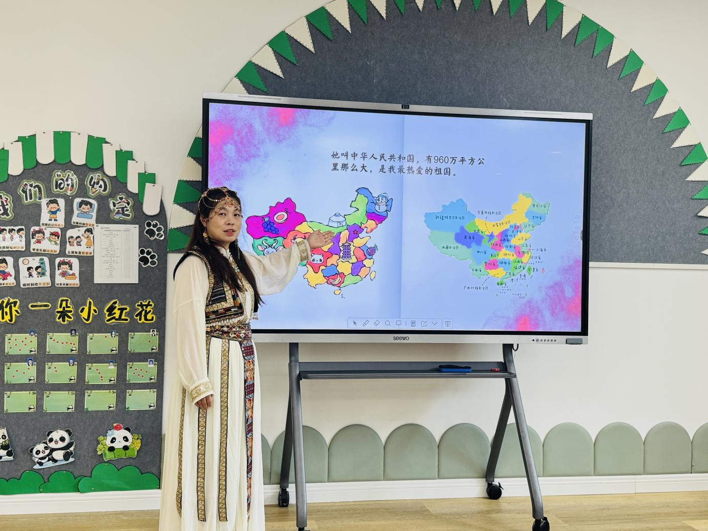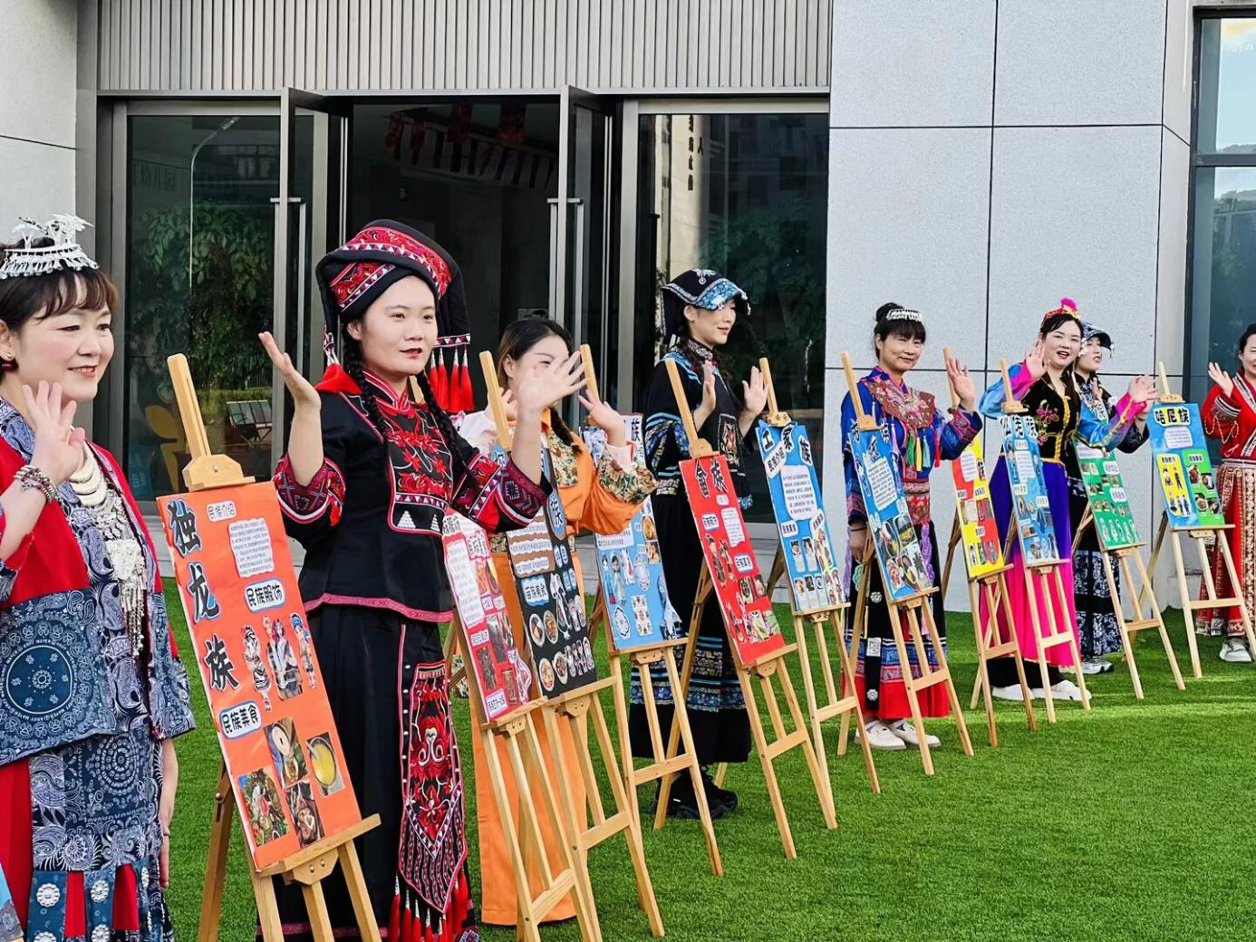 活动前,幼儿园开展了系列文化预热。各班老师通过绘本故事、民族服饰卡片、《国家》手语歌等形式,将民族文化和爱国教育融入日常教学。孩子们在认识56个民族特色习俗的同时,家长们也积极参与亲子共学,“中华民族一家亲”的种子在潜移默化中生根发芽。