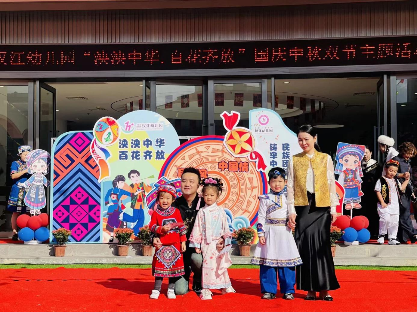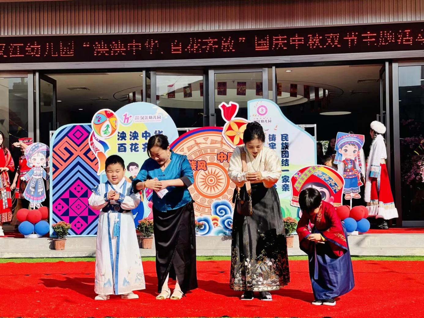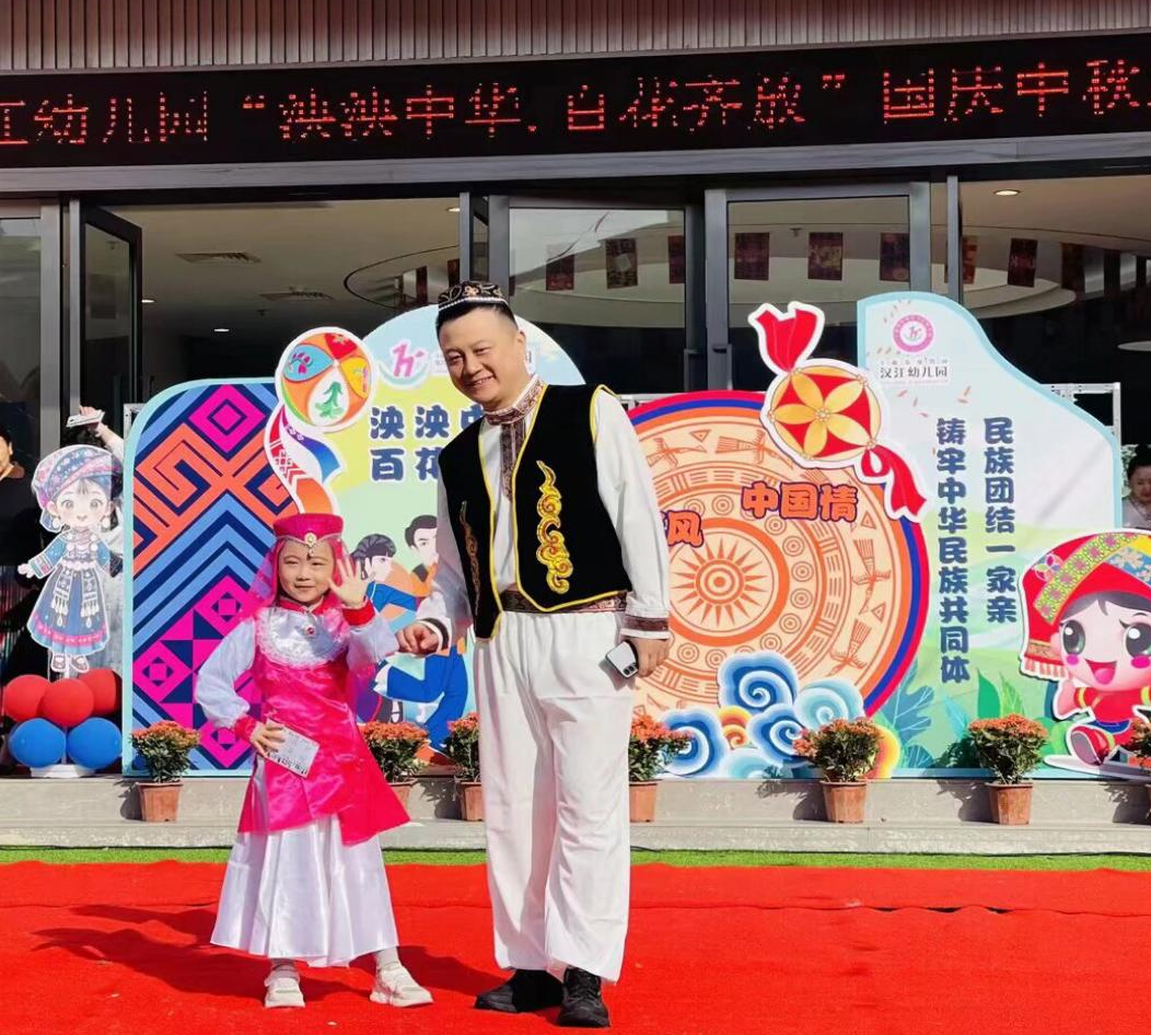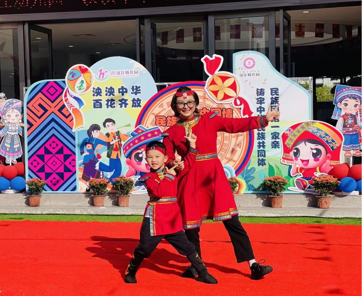 金秋送爽,家国同庆。在国庆与中秋双节来临之际,为厚植家国情怀,筑牢中华民族共同体意识,9月30日,汉江幼儿园隆重举办“泱泱中华 百花齐放”民族团结主题亲子活动。从文化启蒙到实景体验,从歌舞展演到趣味互动,全体师幼与家长齐聚一堂,共同见证了一场精彩纷呈的民族文化盛宴。