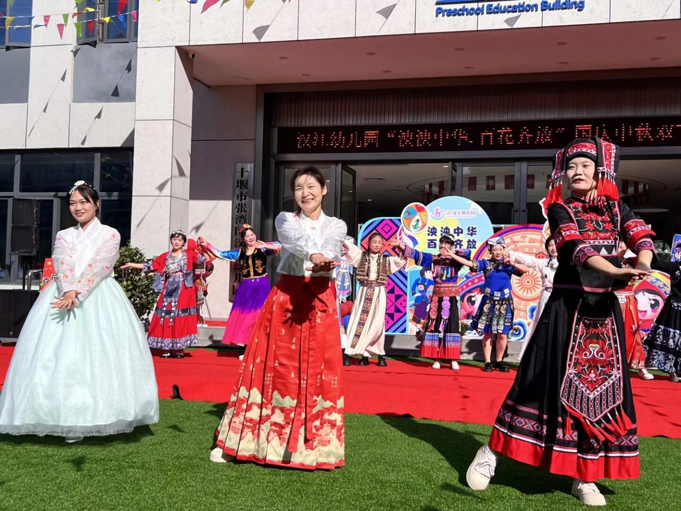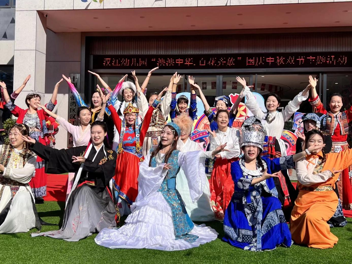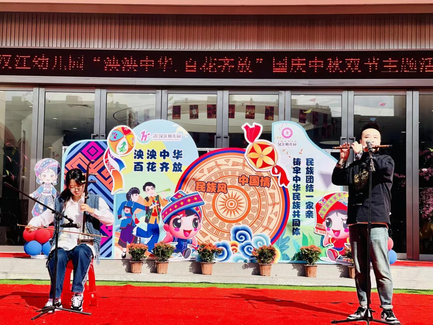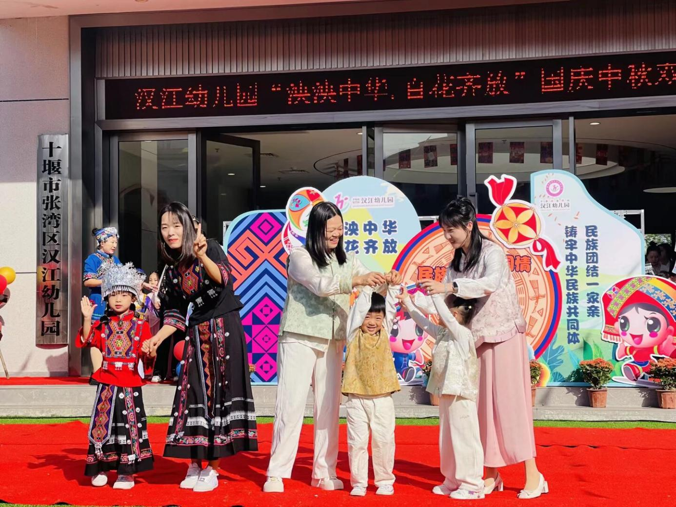 金秋送爽,家国同庆。在国庆与中秋双节来临之际,为厚植家国情怀,筑牢中华民族共同体意识,9月30日,汉江幼儿园隆重举办“泱泱中华 百花齐放”民族团结主题亲子活动。从文化启蒙到实景体验,从歌舞展演到趣味互动,全体师幼与家长齐聚一堂,共同见证了一场精彩纷呈的民族文化盛宴。