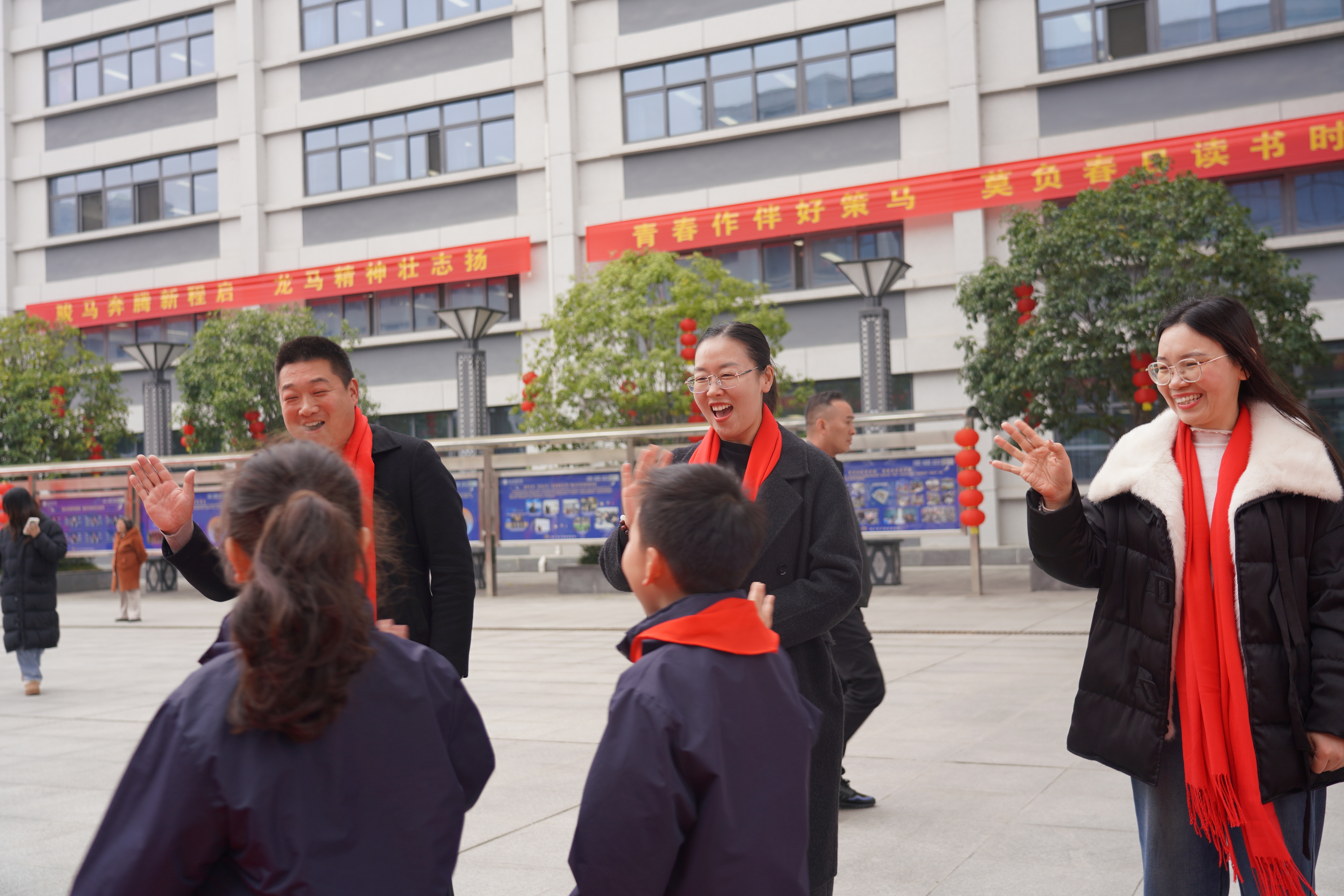 为确保返校工作安全、高效、有序,初中部与小学部学子分时段、分批次入校,整个流程井然有序、衔接顺畅。校门两侧,校领导与老师们温情守候,一句句“欢迎回家”“新学期加油”“马年更出彩”,如春风化雨,温暖着每一位学子的心田,也为他们的新征程注入了满满的信心与力量。