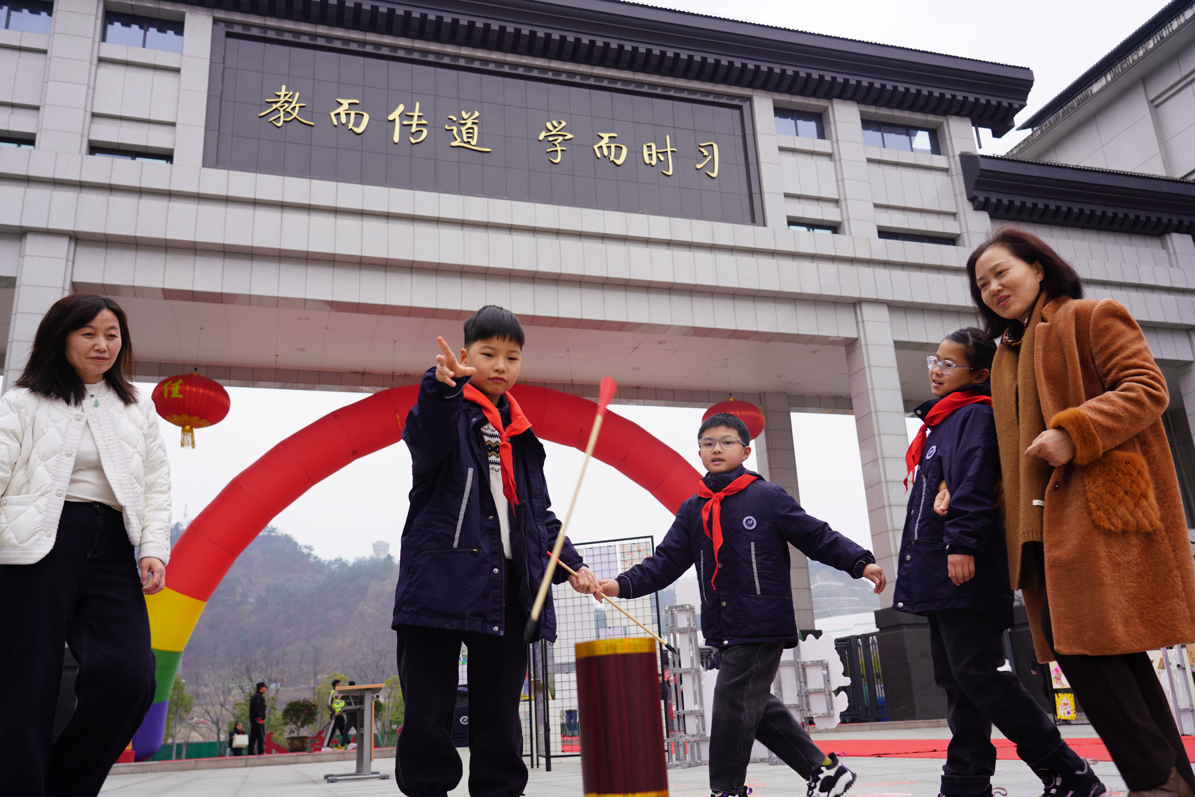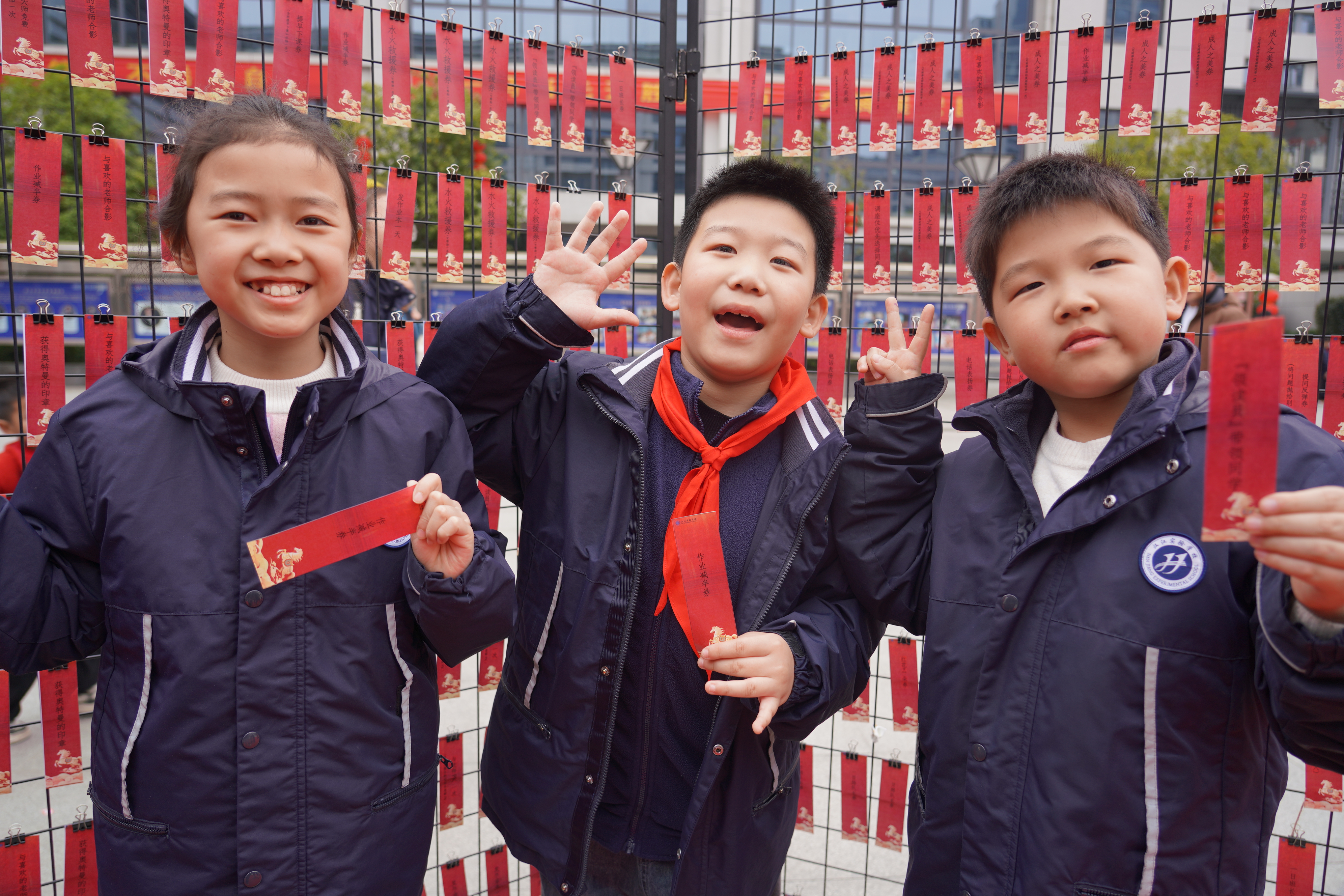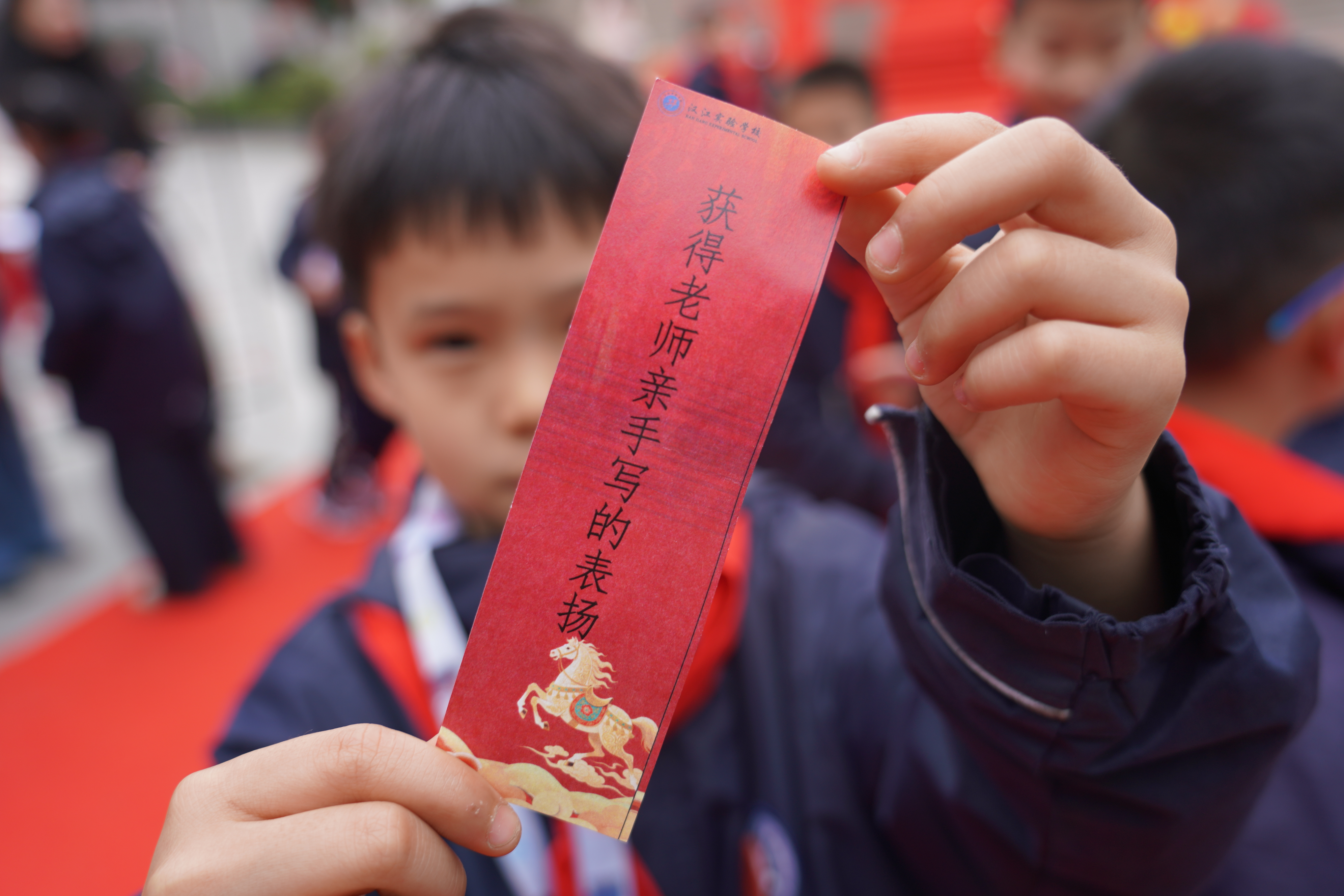 红毯两旁,优秀少先队员身着整洁校服,佩戴着鲜艳的红领巾,手持励志标牌,身姿挺拔、神情庄重,向每一位入校的学弟学妹庄严敬礼。他们稚嫩却坚定的身影,成为校园里最亮丽的一道风景线,传递着汉实大家庭的温暖与友爱,让红色基因在薪火相传中生生不息。