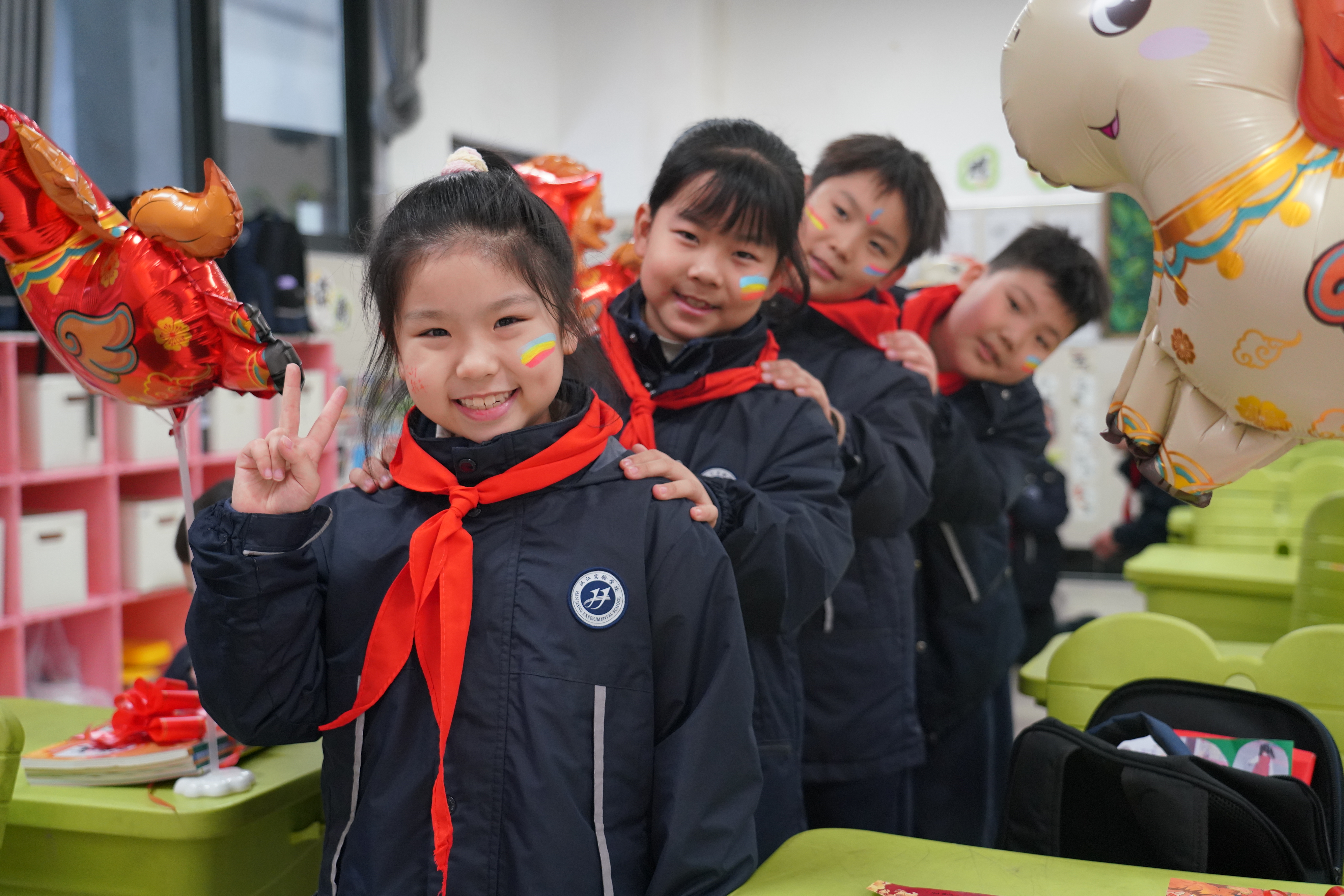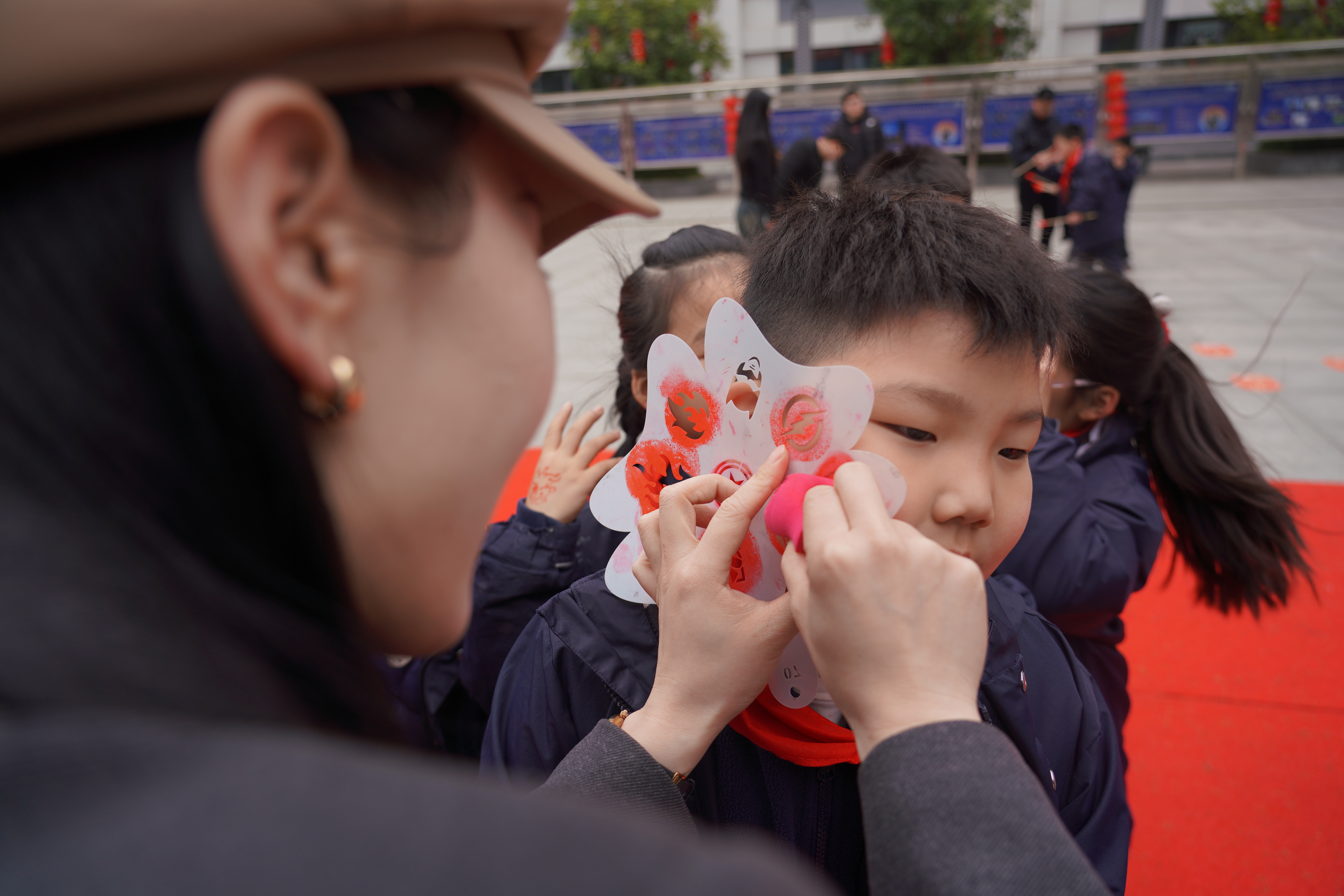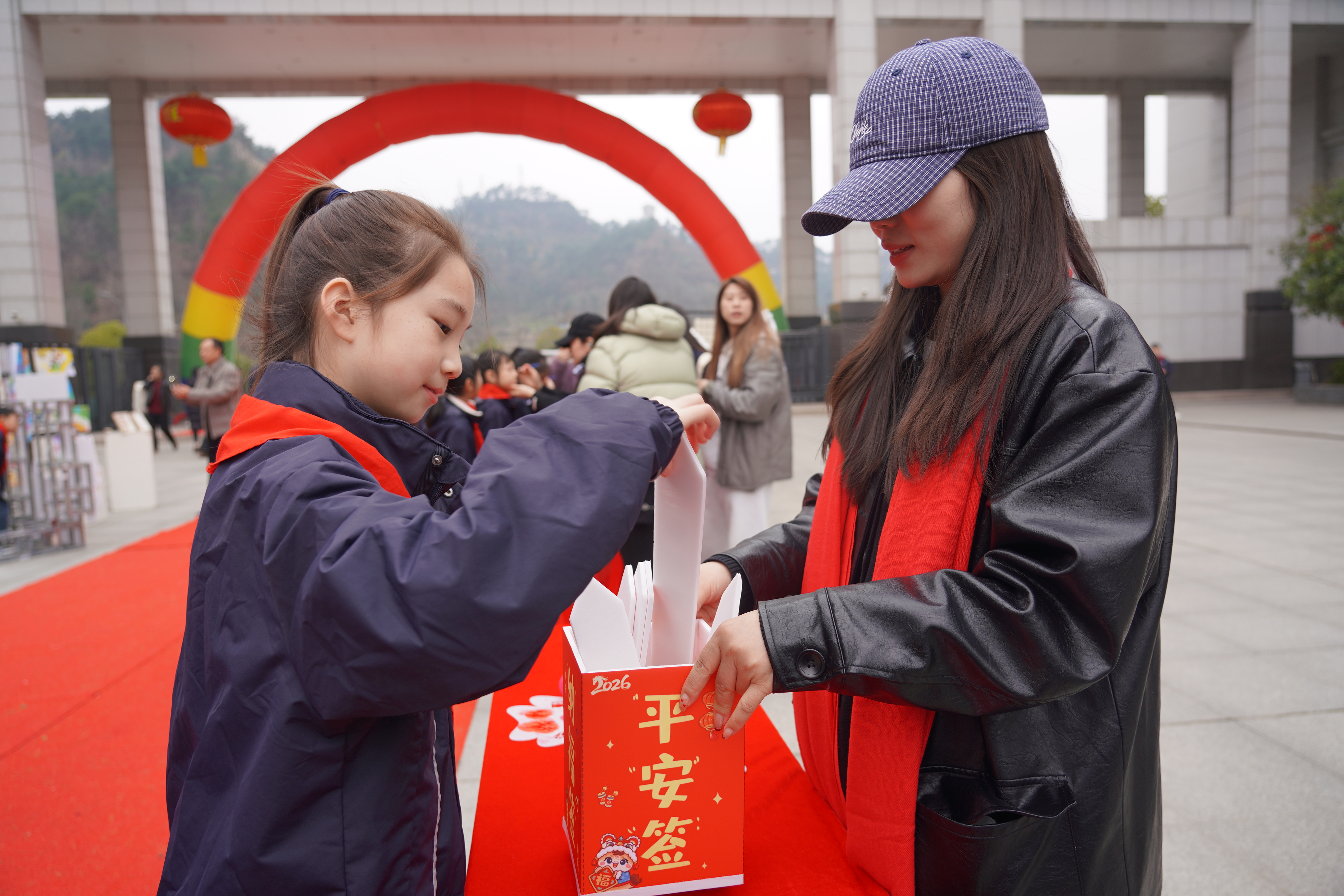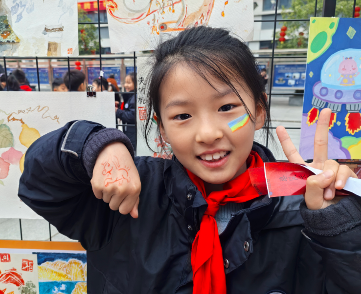 老师们温柔叮嘱,细心提醒同学们调整作息、注意安全,耐心解答疑问,用爱心与责任帮助大家快速适应校园生活,融入开学节奏。精彩的互动环节更是接连上演:投壶纳福环节趣味十足,学子们凝神聚力、轻投箭矢,欢声笑语中传递着传统民俗的乐趣与美好期许;幸运抽签区人气爆棚,一张张写满马年祝福与励志寄语的签语,让每一位学子都收获了专属的新学期惊喜;脸部彩绘现场创意满满,老师们手持画笔,勾勒萌趣图案、涂抹绚丽色彩,一张张灵动的笑脸,盛满了对新学期的憧憬与热爱,将现场气氛一次次推向高潮。